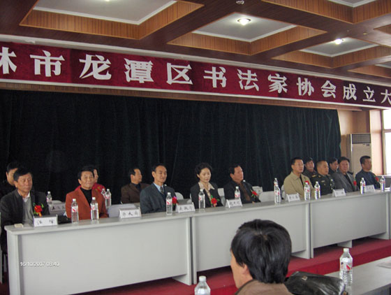 —吉林市龙潭区书法家协会成立 10月16日吉林市龙潭区书法家协会在龙潭区政府七楼会议室宣告成立。龙潭区有关领导和市书法家协会领导到会讲话。著名书法家刘乃中、王漱石、张运成、刘闯义等题词祝贺。我市著名书法家叶天废、李壮、刘成、杨延文、刘素娣、李向阳、任志刚、高顺南、冯冠杰等到会祝贺并挥毫泼墨为书法爱好者留下墨宝。蛟河书协主席李振东、昌邑区书协主席徐文江、市楹联艺术家协会秘书长刘凤麟等到会祝贺。在一楼大厅举办了书法展览。真、草、隶、篆各种书体,或端庄,或秀丽,或飘逸,或遒劲多种风格,让人赏心悦目。 沙非为吉林市龙潭区书法家协会主席。